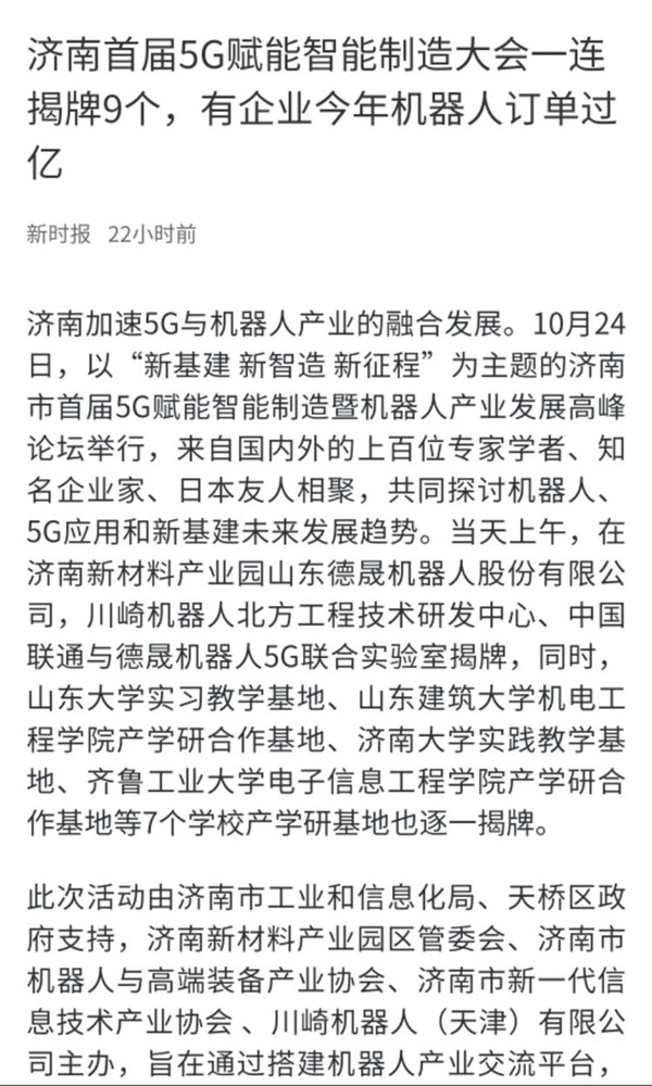 上午9:30全国首 个5G赋能智能制造及工业机器人产业发展大会在离市区20公里的新材料产业园举办,下午2:00“5G赋能智能制造暨工业机器人产业发展论坛”在南郊宾馆举办,日本川崎的两任董事长、上海宝钢、天津钢管等参加会议。