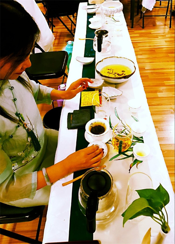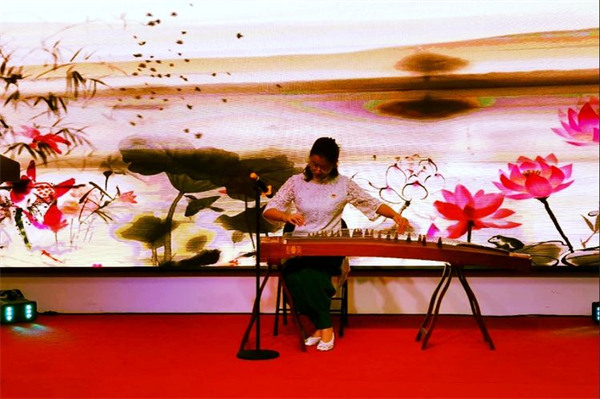 会议现场协会领导激情挥毫泼墨、佳人倾情抚筝余音绕梁,茶艺表演优雅唯美,茶香醇正沁人心脾,石阡苔茶,高端留香 ,久久回味!